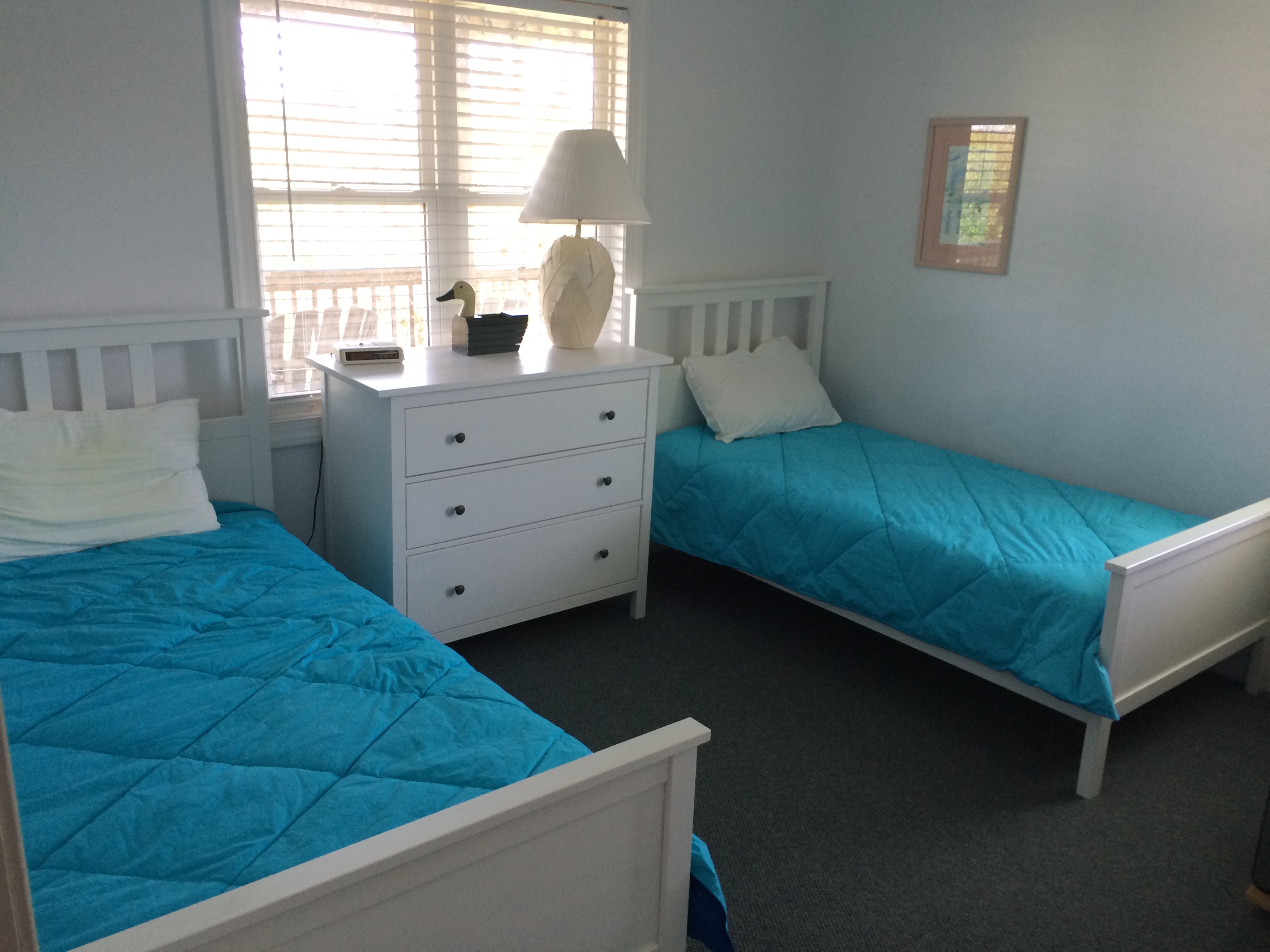 This bedroom features a two twin
